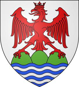 Créé à l'issue d'une révolte des bourgeois de la ville au Moyen Âge contre la tutelle de l’évêque, le blason de cette cité correspond à l'inversion des couleurs de celui de l’évêché.