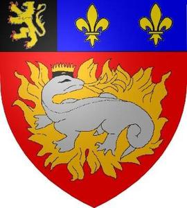 Sur le blason, la salamandre fait référence à François Ier, créateur de la ville, et le lion, issu des armoiries de la Belgique, remplace une des fleurs de lys, en souvenir de l'accueil du gouvernement belge, en exil pendant la Première Guerre mondiale.