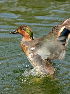 Plus petite espèce de canard de surface, vivant dans les zones tempérées. En période nuptiale le mâle est reconnaissable à sa tête brune barrée de vert.