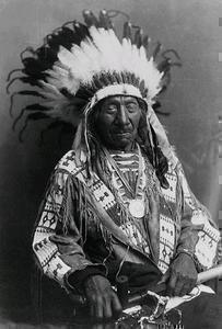 Baptisé "Bison qui s'assied" ou "Taureau Assis" selon les sources, il participa à la fin de sa vie au "Wild West Show" de Buffalo Bill aux Etats-Unis et au Canada.