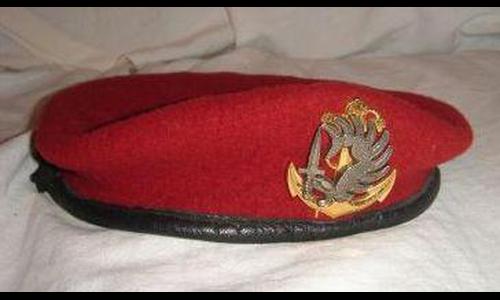 Coiffure souple en laine feutrée de couleur d'un vert plus clair que celui des commandos de marine, elle est ornée, sur le côté droit, de la grenade à sept flammes dont la couleur varie en fonction de l'unité.