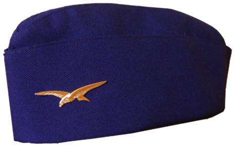 Ce couvre-chef, facile à plier, comporte deux panneaux de tissu qui en constituent les côtés, réunis par une coiffe formant soufflet. De couleur bleue, il porte, sur le côté avant gauche, un insigne représentant un épervier surnommé "le charognard".