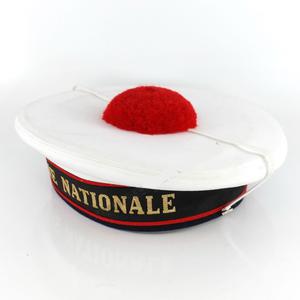 Couvre-chef dont le pompon rouge, situé au centre d'un bonnet blanc, est censé porter bonheur quand on le touche. Il est, en outre, composé d'un ruban noir légendé, bordé de lignes rouges, et d'une jugulaire faite d'un lacet de coton blanc.