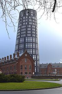 60 000 lames de verre coloré composent la façade de cette tour, que les habitants de la ville surnomment "le suppositoire".