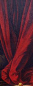 Scène libertine : un couple qui s'enlace déjà va rejoindre le lit moelleux, dès que l'homme aura rendu la chambre inaccessible à d'éventuels importuns. Et sur une table, un fruit, rappel du fruit d'Ève, fruit de la connaissance - charnelle bien sûr.