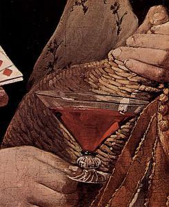 Extrait d'une célèbre scène de genre, où l'on voit se dérouler une partie de cartes perdue d'avance par un garçon naïf, dupé et escroqué par un adversaire qui tire au bon moment de sa ceinture les cartes gagnantes qu'il y a dissimulées.