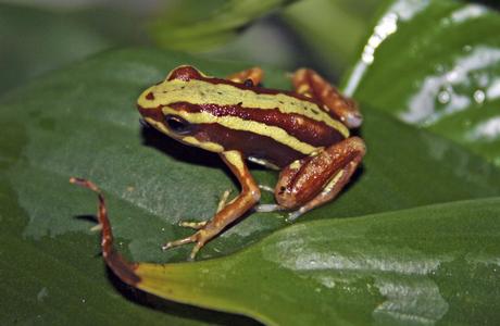 Cet amphibien, de la famille des Dendrobatidés, produit un alcaloïde très toxique, l'épibatidine. Son corps, dont la couleur varie du rougeâtre au brun, est traversé par plusieurs bandes blanchâtres ou jaunâtres.