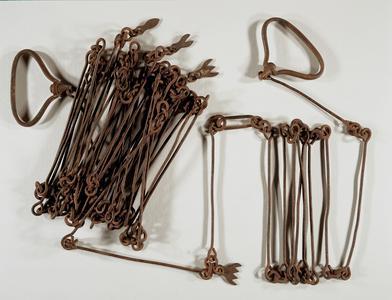 Instrument de mesure ancien de 10 mètres de long et composé de tiges métalliques reliées. Il servait principalement pour mesurer la superficie de terres agricoles.