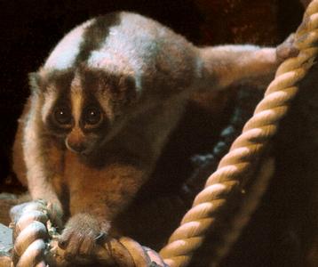 Du genre Nycticebus, cette espèce est aussi appelée nycticèbe coucang ou nycticèbe paresseux. Sa morsure peut être dangereuse car il possède une salive venimeuse.