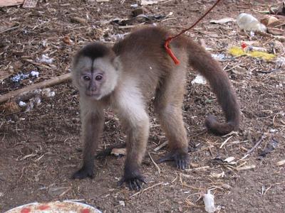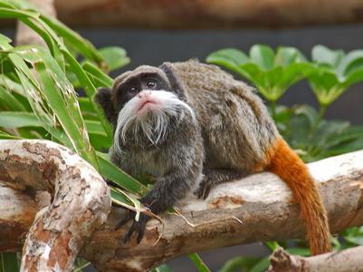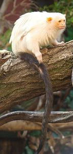 Ce primate, du genre Saguinus, appartient à la famille des Cébidés. Il présente une robe grisâtre et une queue orange. Il est reconnaissable à sa longue moustache blanche.