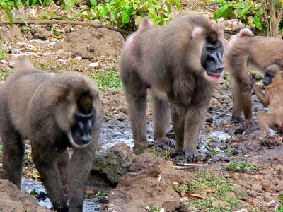 Ce primate, du genre Mandrillus, appartient à la famille des Cercopithécidés. Il présente une fourrure brun-olivâtre. Il est reconnaissable à sa face noire.