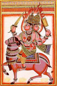 Dieu du ciel, du serment et du droit. Il est souvent représenté chevauchant makara, monstre marin possédant une trompe d'éléphant, des dents de crocodile et une queue de poisson.
