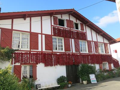 Fête haute en couleurs, qui célèbre, dans un petit village du Pays basque, un ingrédient de la gastronomie régionale : les façades des maisons à colombages rouges et verts arborent fièrement les cordes de grappes de ce produit séchant au soleil.