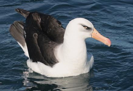 Cet oiseau marin, de la famille des Diomédéidés, possède un plumage noir, gris et blanc. Il doit son nom aux taches noires qu'il présente autour de ses yeux.