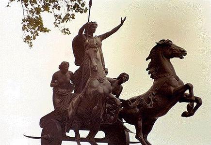 Pour les Britanniques, cette petite reine antique est devenue un symbole du courage anglais, une sorte de Vercingétorix breton. A Londres, près du pont de Westminster, une statue la montre debout sur son char de guerre, entourée de ses deux filles.