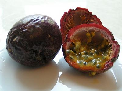 Ce fruit issu d'une liane, la grenadille, également appelé maracudja, existe sous deux formes, la jaune dont les fruits sont consommés frais, et la pourpre qui sert à élaborer des jus. Il est également très consommé en glaces et sorbets.