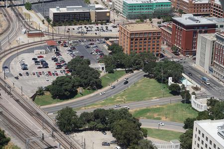 Au Texas, dans un célèbre lieu de crime de notre histoire récente. Trois rues, Main street, Elm street, Commerce street, convergent et passent sous un pont de chemin de fer. Monument historique, resté dans son état général de 1963.