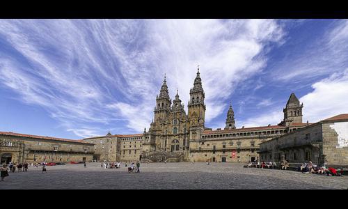Cette place est le but tant espéré des milliers de marcheurs qui chaque année, depuis des siècles, viennent ici en pèlerinage. Les rayons figurant dans le pavage de la place symbolisent la fin de chacune des routes qui y conduisent.