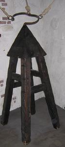 Cet appareil constitue une sorte d'échelle sur laquelle est attachée la victime, les pieds étant reliés à une roue par une corde. Son usage correspond au supplice de l'écartèlement.