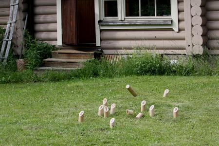 L'objectif de ce jeu d'adresse d'origine finlandaise, est de marquer exactement cinquante points en renversant des quilles numérotées de 1 à 12 par un lancer d'un bâton de bois.