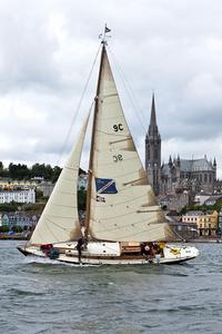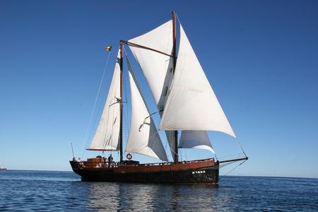 Voilier à deux mâts et à gréement aurique, comportant un grand mât à l'avant, et un mât d'artimon à l'arrière, positionné en arrière de l'axe de rotation du safran à la différence du ketch.