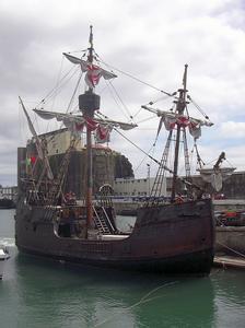 Grand navire de la fin du Moyen Âge, également appelé nef, caractérisé par sa coque arrondie et ses deux hauts châteaux avant et arrière, immortalisé par la Santa María de Christophe Colomb.