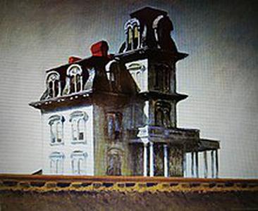 Cette grande demeure (modèle pour Hitchcock de la maison de Psychose) laisse une impression de tristesse, de solitude, de silence, d'isolement, d'abandon. Le train qui passe à son pied est, au contraire, mouvement, vitesse, bruit. Le Passé et l'Avenir.