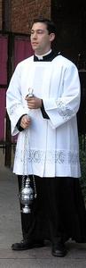 Aube raccourcie s'arrêtant à la hauteur des genoux qui était, avant les réformes des années 1960, le vêtement de chœur commun de tous les clercs et civils servants qui, aujourd'hui, font plutôt usage de l'aube.