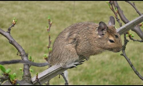 Ce rongeur dont le bout de la queue est noir appartient à la famille des Octodontidés. En Europe, il est fréquemment utilisé comme animal de compagnie.