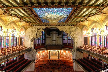 Cet auditorium moderniste inauguré en 1908, œuvre de Lluís Domènech i Montaner, regorge d'innovations et de techniques artistiques. En particulier, le parti-pris de construire la scène au premier étage garantit un éclairage naturel de qualité.