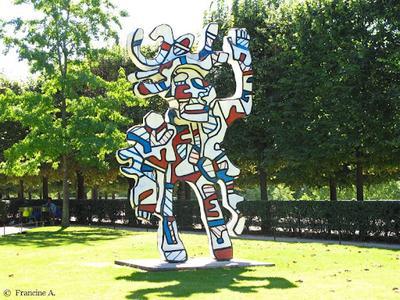 Une "sculpture-folie", en résine époxy peinte, réalisée d'après une maquette laissée par l'artiste. Haute de 4 m, elle représente un humanoïde, le bras gauche levé, peint en sections de couleurs blanche, bleue et rouge, séparées par des traits noirs.