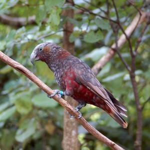 Ce grand perroquet au plumage gris-brun, appartenant à la famille des Strigopidés, est appelé kaka par les maoris. Il est très proche du kéa, lui aussi originaire de Nouvelle-Zélande.