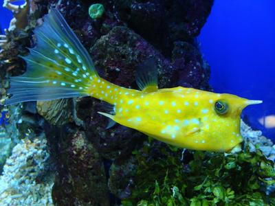 Ce poisson marin, du genre Antennarius, possède une peau recouverte de petites épines. La plupart du temps, la couleur de sa peau varie du jaune au marron avec des rayures noires.