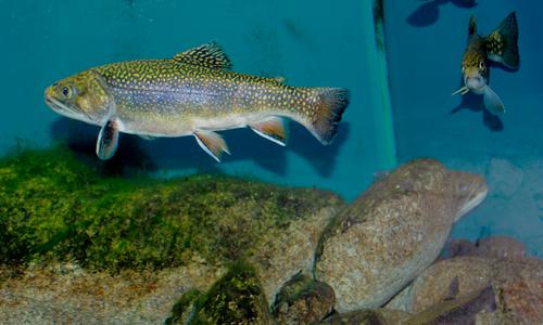 Ce poisson, du genre Salvelinus, appartient à la famille des Salmonidés. Il présente une peau verdâtre tachetée de jaune. Il est aussi appelé truite mouchetée.