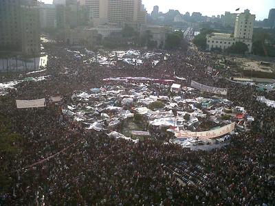 Attaqués par les forces du régime, les manifestants du Caire réussissent à tenir la place jusqu'à ce que Moubarak soit contraint de quitter le pouvoir.