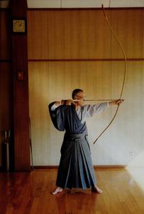 Art martial aux gestes millénaires dont le nom signifie "la voie de l'arc". Il s'est développé à partir du XVIe siècle à la suite de l'arrivée des armes à feu. Il est pratiqué avec un arc d'une forme particulière de plus de deux mètres.