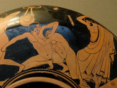 Sport de combat des Jeux olympiques antiques, c'est l'ancêtre de la boxe anglaise. Les poings protégés par des courroies de cuir, il n'y avait pas de catégorie de poids ni de limitation de temps. Les combats, très violents, s'achevaient par KO ou abandon.