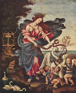 Cet oiseau qui, sur le point de mourir, s'abandonne, dit-on, à un chant doux et poignant, symbolise la musique, et est associé à la muse du chant et de la poésie lyrique.