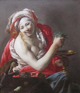 L'animal, qui imite le geste de la prêtresse de Bacchus en prenant une grappe dans ses pattes, est ici un symbole du vice, et sa présence a valeur de mise en garde contre les excès de boisson.