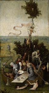 Faisant jadis partie d'un triptyque, ce panneau exposé au Louvre présente un groupe de dix personnages regroupés sur une barque et qui semblent gagnés par la folie.