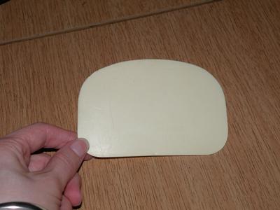 Ustensile de cuisine en forme de demi-lune semi-souple servant à racler les plats et plans de travail. Il est également utilisé pour couper des portions de pâte.