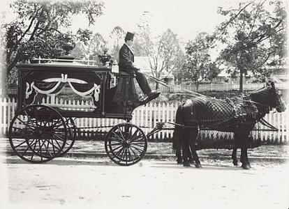 Voiture peinte en noir, couleur du deuil, avec parfois des ornements blancs, argentés ou dorés, tirée par deux chevaux, elle servait à transporter solennellement les défunts à leur dernière demeure.